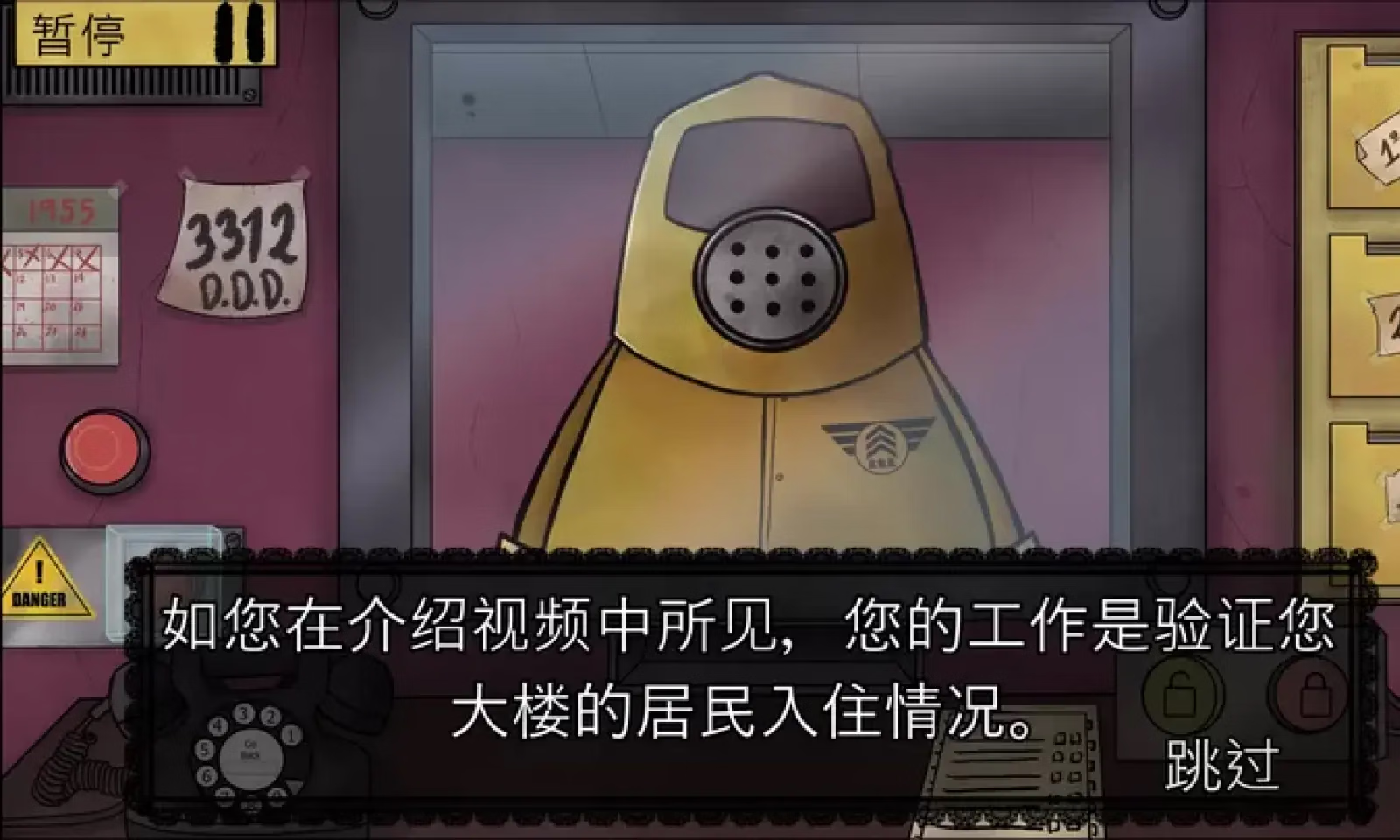 您所在大楼的门卫职位有空缺,由于您需要钱而又找不到工作,您别无选择。现在是1955年,由于未知的原因,分身比平常更常见,因此DDD已对此事采取了行动。你的工作将是允许或拒绝请求进入建筑物的对象,这看起来很容易,但要小心,你不能忽视任何细节,因为你可能会成为分身的食物。